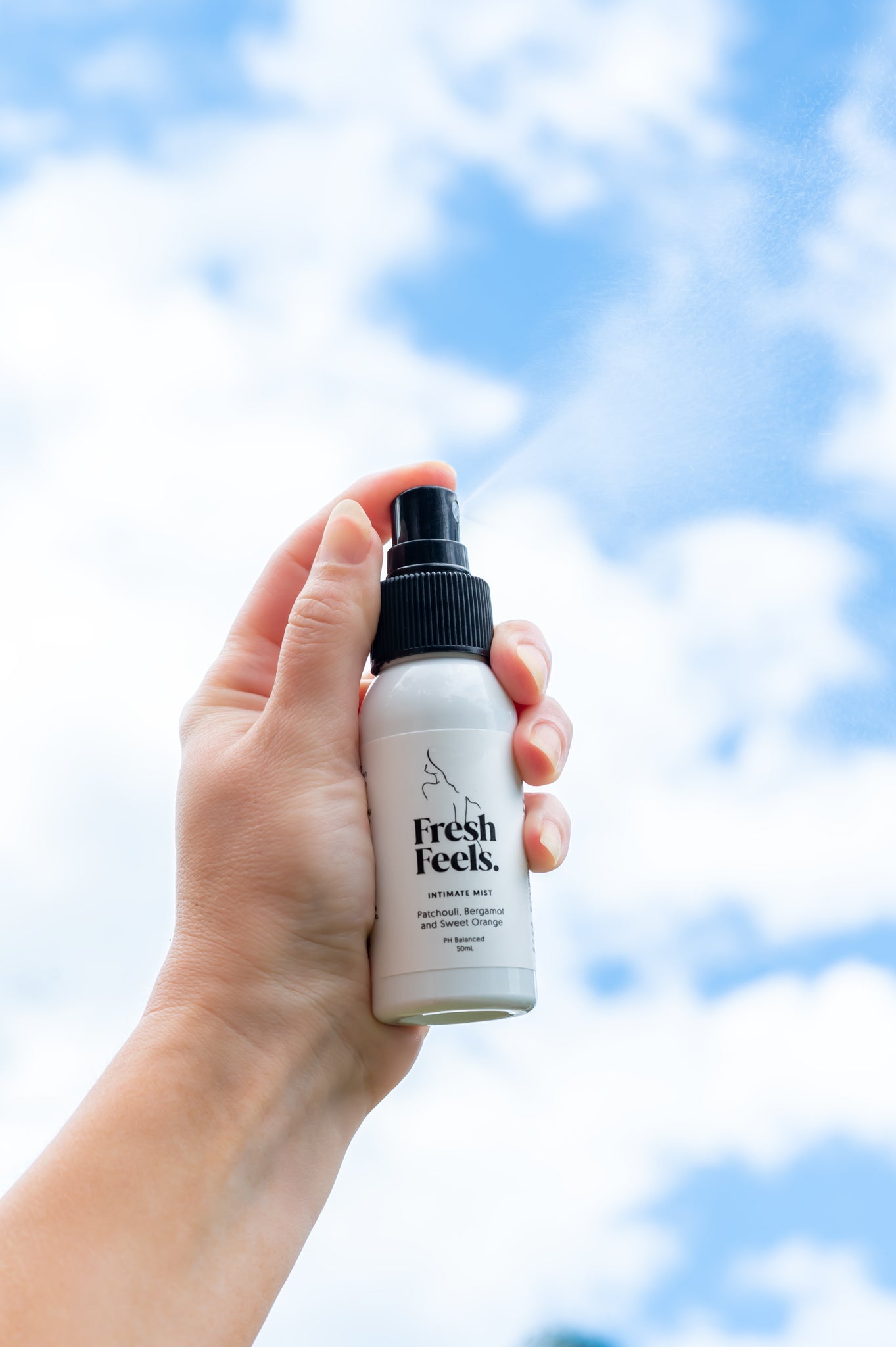 Care down there. Nourishing and soothing for your sensitive area. Fresh Feels Intimate Mist can help rehydrate, cleanse and give long lasting freshness. It can eliminate odour, leaving you feeling confident all day while on the go.